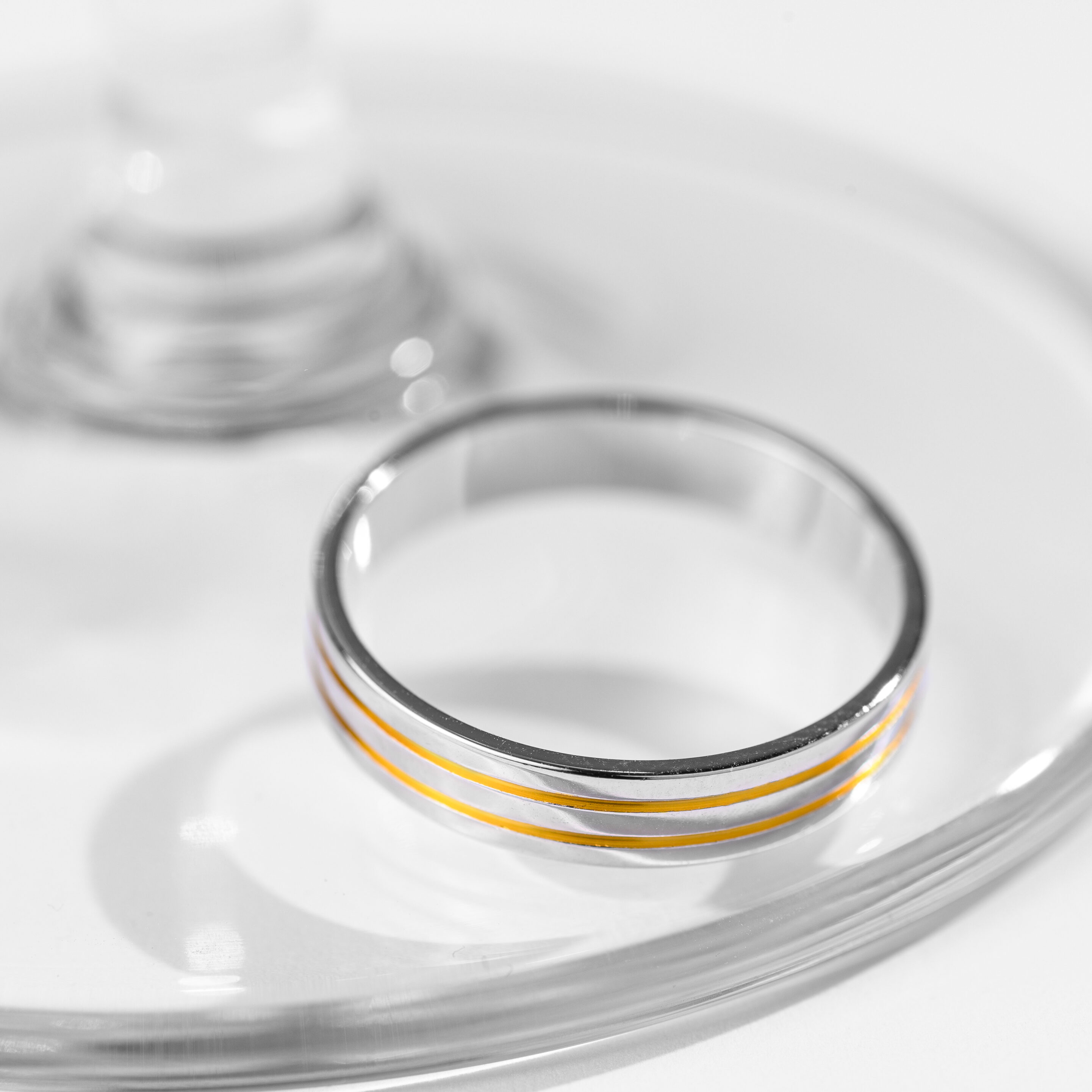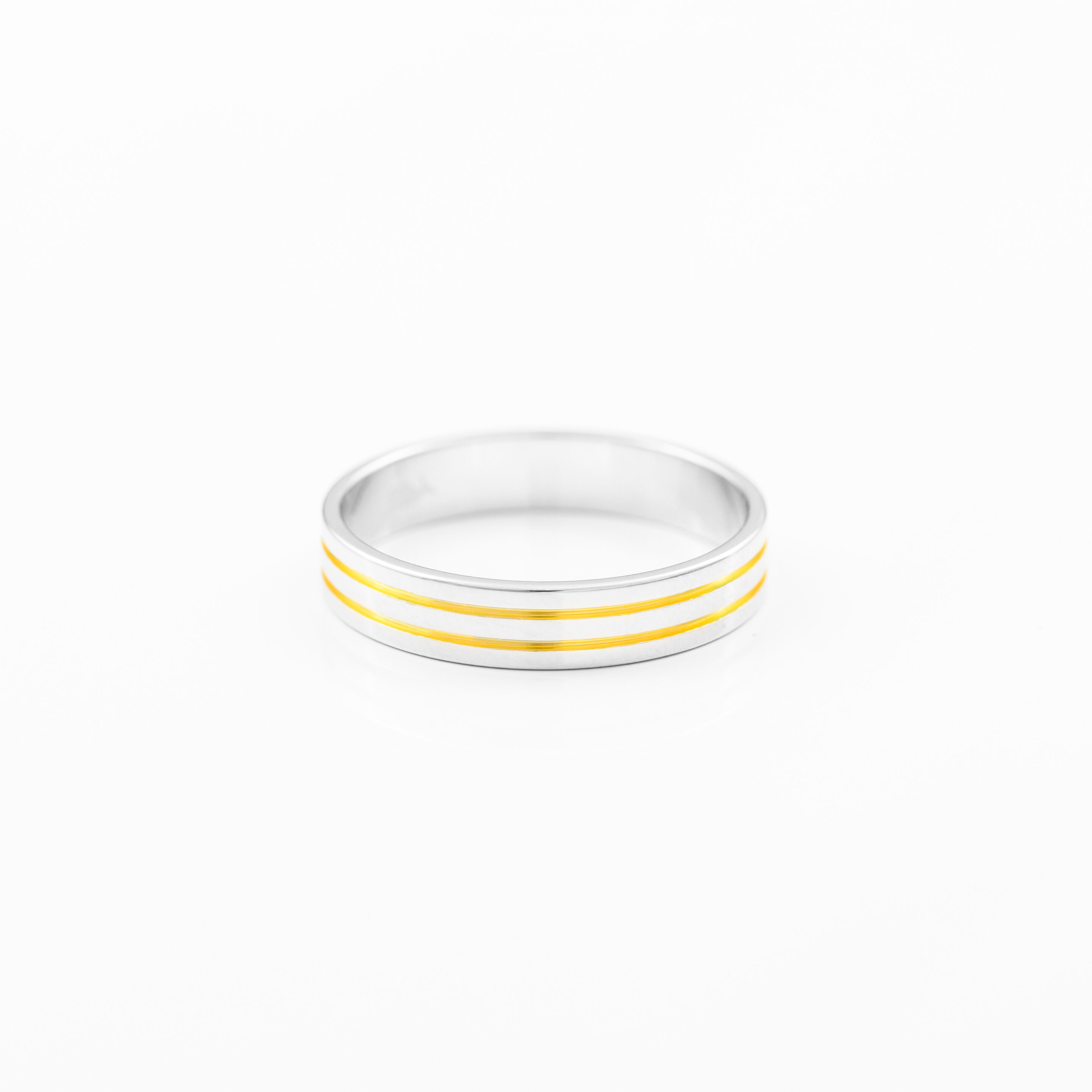 Alianza de plata (925) de 3mm de ancho, baño de rodio de 5 micras y oro 18kt. Acabado interior y exterior plano. Disponible desde la talla 8 hasta la 32.